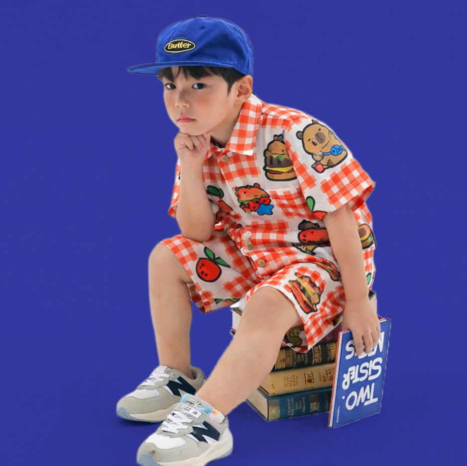 The Capybara Orange Checkered Cord Set features a distinctive orange checkered design that adds a...