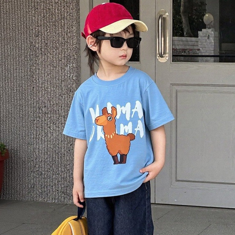 The Cute Llama New Sky Blue Tee features a whimsical design that appeals to animal...