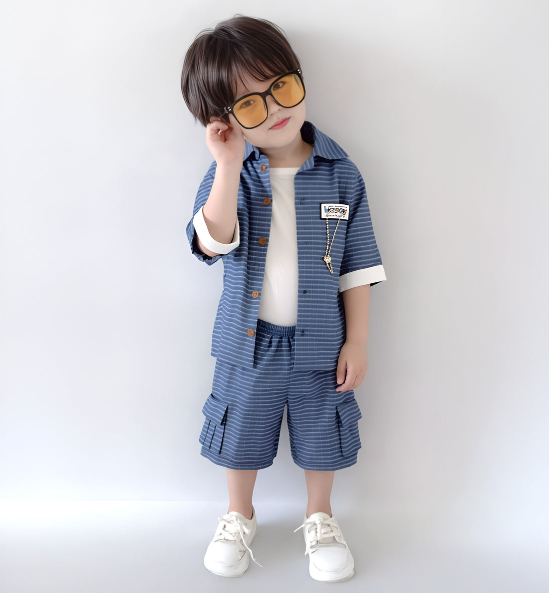 3 Piece Set - Shirt + T-Shirt + Shorts - Blue