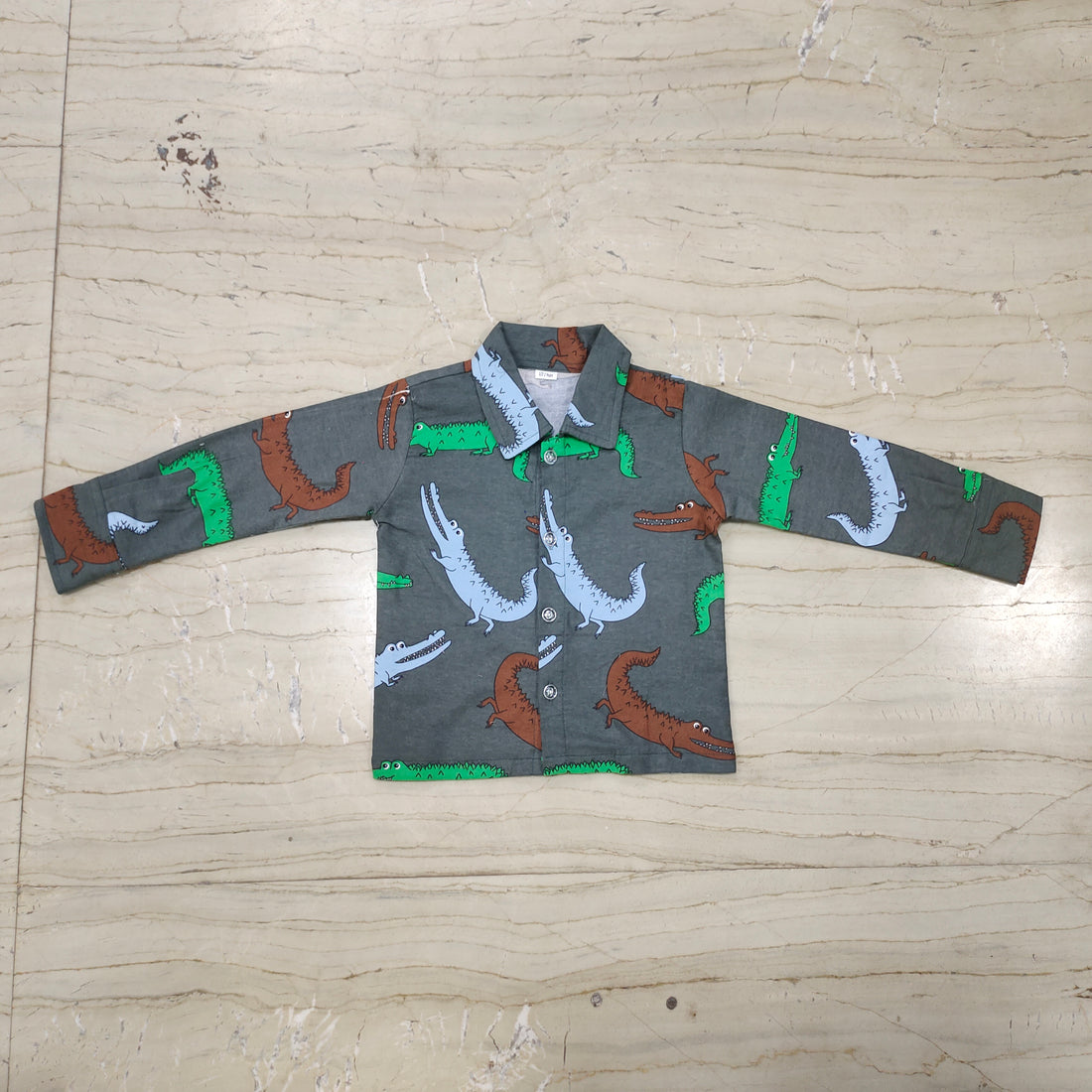 Upgrade your little one's wardrobe with our Crocodile Green Wollen Shirt for Kids. Made with...