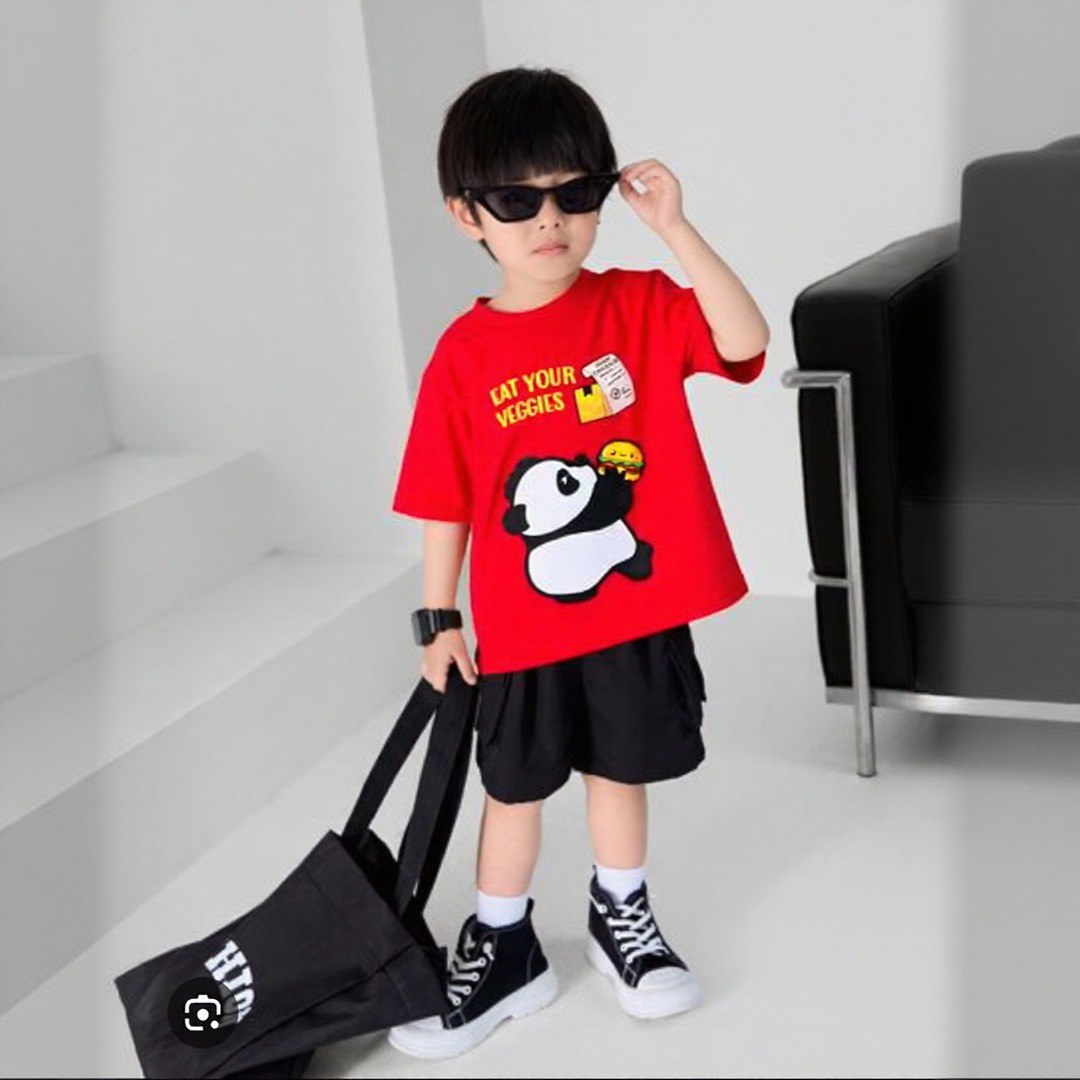 The Eat Your Veggies Panda Red Tee is designed for children, promoting a positive message about healthy eating habits. Made from soft, durable fabric, it provides comfort and longevity, making it suitable for daily wear. The playful panda graphic encourages a fun approach to nutrition, appealing to young audiences.