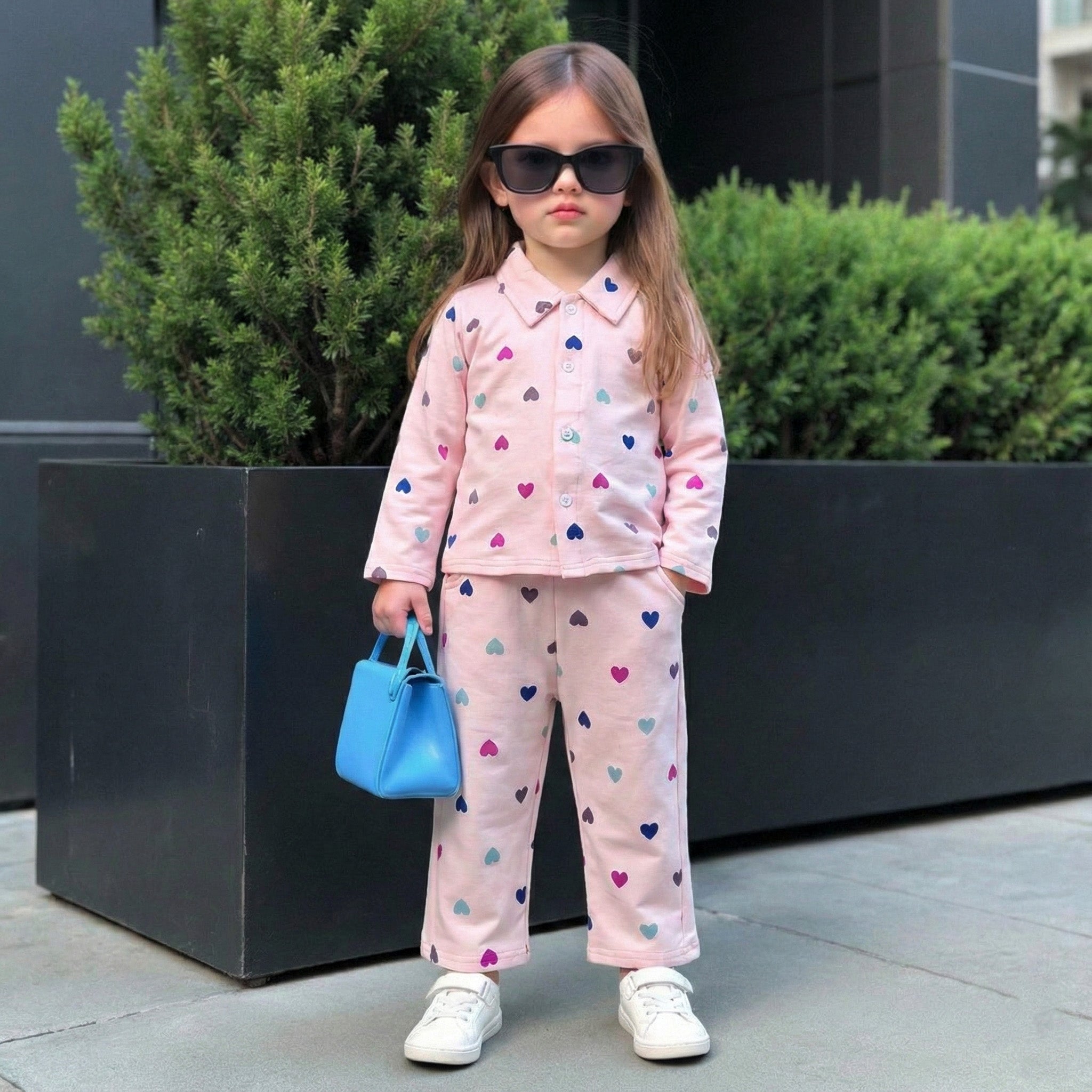 Introducing the Pink Rainbow Heart Cord Set - a stylish and sturdy clothing set featuring a detachable pink rainbow heart cord. Made with high-quality materials, this set offers the perfect balance of fashion and function. Say goodbye to boring cords and hello to a pop of color and convenience in your wardrobe.