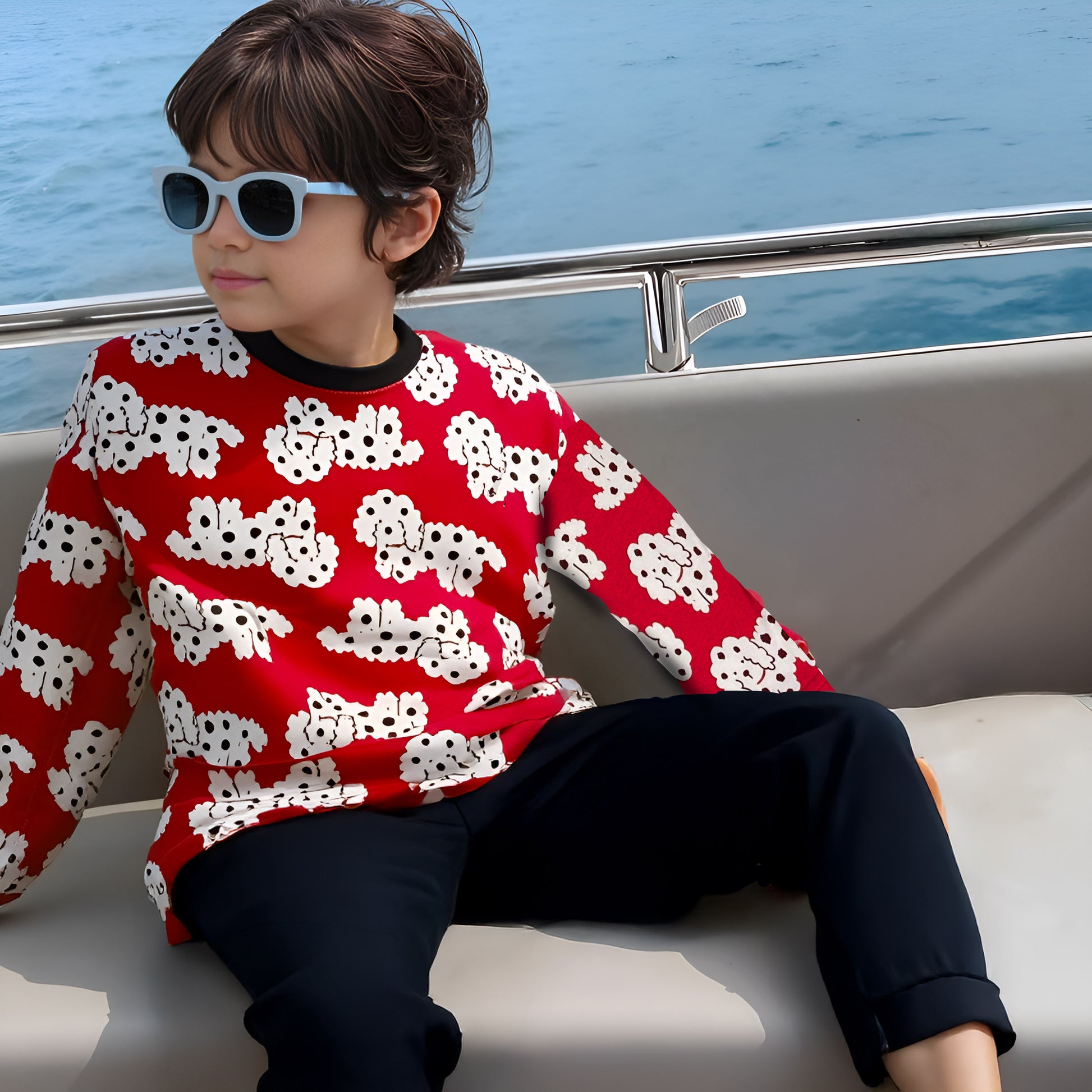 Cute, cozy, and full of puppy power – our Puppy Love Red T-Shirt is the perfect pick for little dog lovers! Designed with an all-over Dalmatian puppy print on a bold red base, this tee brings endless charm and playful energy to your child’s everyday outfits. The contrasting black neckline adds a stylish touch, making it as trendy as it is adorable.